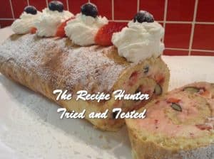 Berries and cream cheese, all wrapped in a home-made swiss roll – what a treat!
