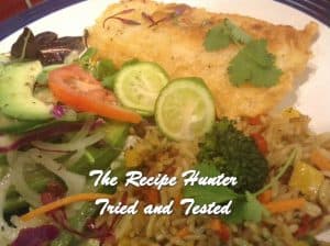 Battered Hake fillets with salad and veggie rice, it’s so quick and simple