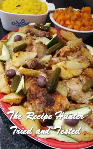 Feriel's BBQ Oven Roasted Chicken With Potato Wedges, Cubed Butternut and Yellow Rice