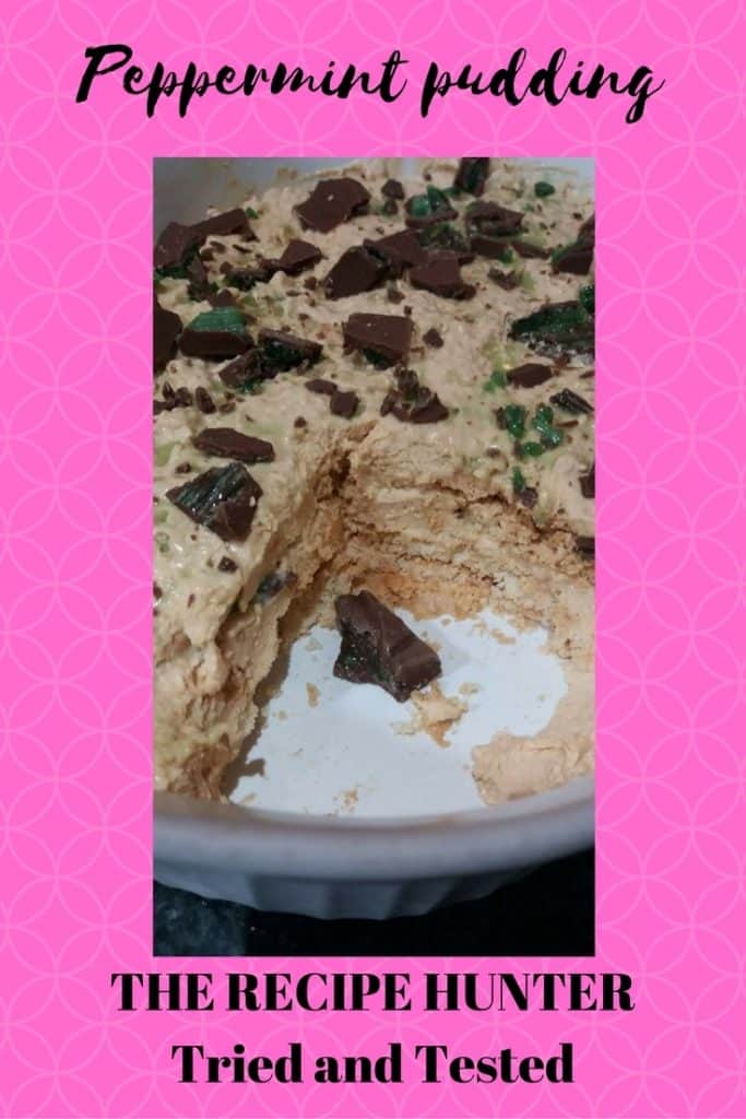 Spoon in silicone cupcakes or in a square Pyrex dish and decorate with crushed peppermint before serving.