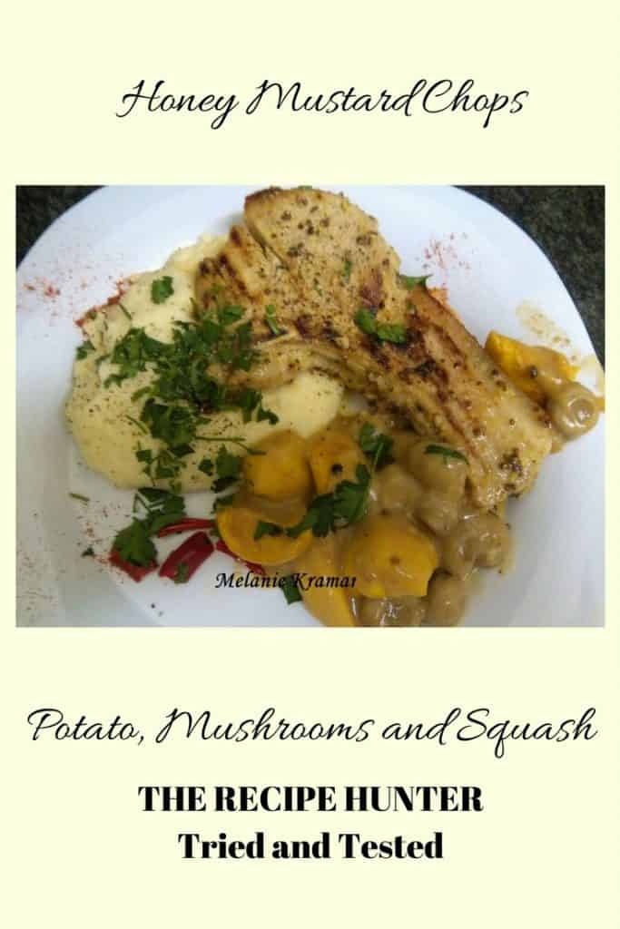 Well the week is never complete without pork chops done in some way or another and this recipe is one I adapted from a chicken recipe. I made Honey and Mustard Pork Chops with creamy mashed potato, and mushrooms with yellow squash in pepper sauce.