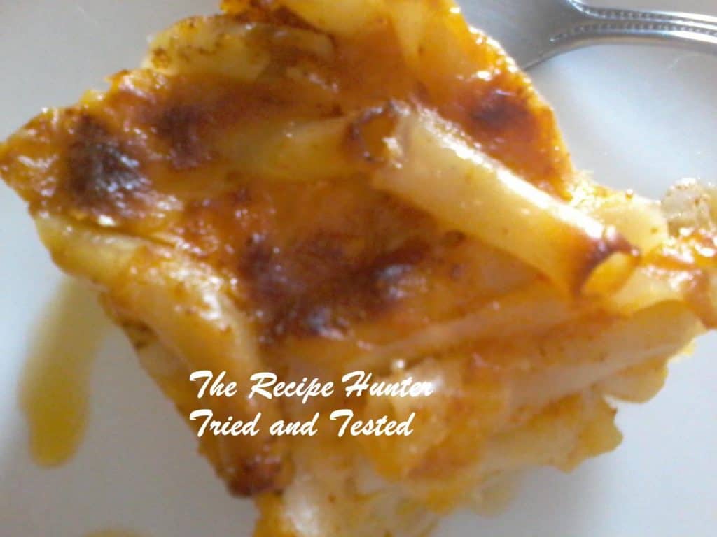 Grease dish pour into dish top with extra cheese, dust with paprika.
